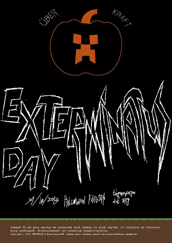 Exterminatus Day (Exterminatus, Экстерминатус, alexx. Exterminators) проводился каждого 31 числа (то есть раз в два месяца) в 2013 году. Суть была проста: от полуночи до полуночи всем игрокам выдавались креативы и админки с предписанием УНИЧТОЖИТЬ ВСЁ. По завершению праздника разрушения сервер откатывался на сутки назад.
